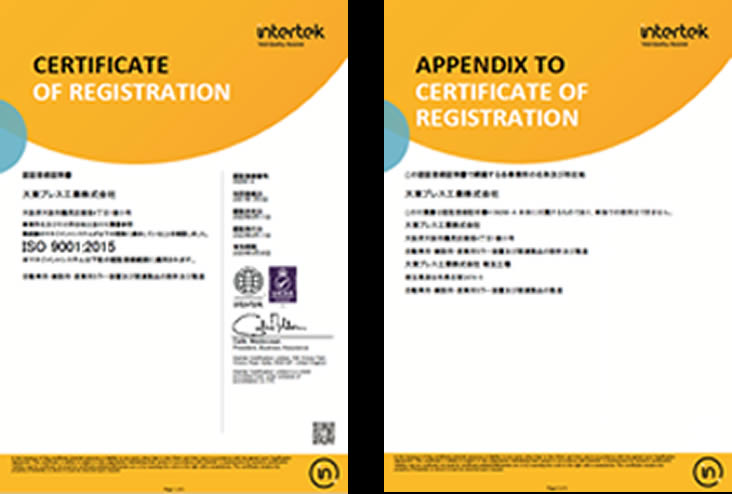 本社/本社工場ISO9001認証取得
