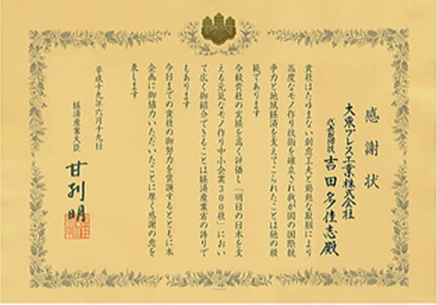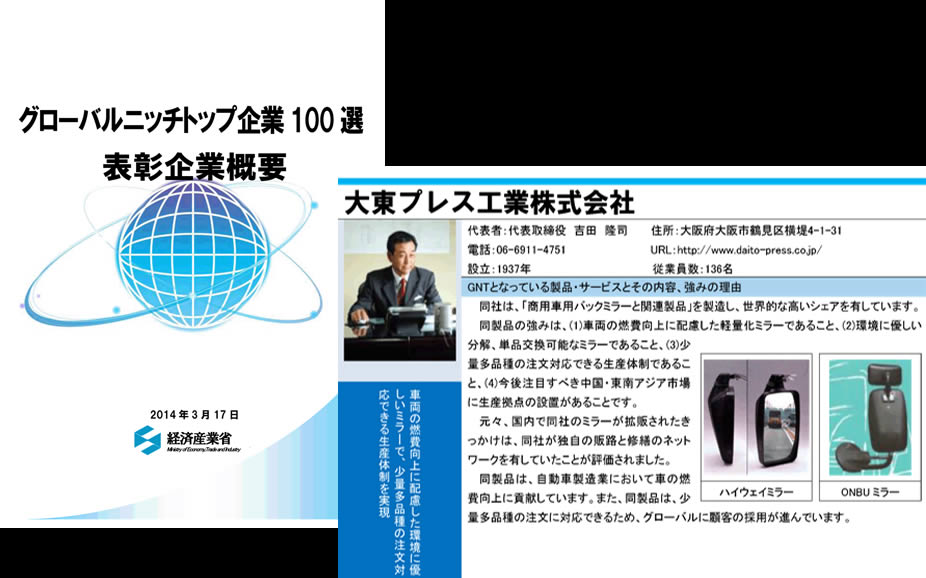 経済産業大臣より、グローバルニッチトップ企業100選に選ばれる